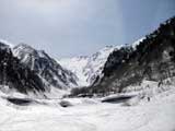 天気は快晴となり、コンディションも非常によいことが期待されるなか、白馬より針ノ木岳に向かう。7時頃に扇沢を到着、準備をすまし、7時半すぎにスタートする。天気もよく、下部の積雪はおもったより少ない。すでに先行パーティーが何組か入っているなかを我々も後に続く。途中一組のパーティーを追い抜き、そこそこのペースで上がっていった。沢の左右の状態をみると、樹木から落ちた雪による崩れたあとが多少あるものの大きな点発生、面発生雪崩とも見当たらなかった。