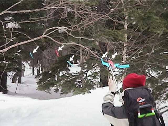| 事の始まり: 三段山周辺で、毎年こんな光景が見られるようになりました(下の写真参照)。 蛍光ピンクやブルーのビニールテープが、白銀荘から山頂直下まで、あるいは周辺の樹林帯に大量に吊してあります。 取付間隔は短いところで1メートル(!)。長くて10メートル。 樹林帯から上では、とりあえず目に付く灌木すべてにテープをとりつけてありました。 付けられ方はかなり無秩序且つ大量で、うっかりするとナマコ尾根への深い谷へ迷い込まされられるようなものもありました。 ![]() 我々は、そのような残置テープを見つけたら、かえって道迷いを誘発する恐れがあり危険と判断して、必要最小限のものを除いてほとんど全部撤去しています。 しかし、枝に堅結びで取り付けてあるものが多く、取り外しにとても苦労します。どうしても取れず、止む終えず枝を折ったものもあります。 取り外したテープの本数は、かぞえきれないほど大量です。 どんなに酷い気象条件下でも、こんな間隔の大量のテープは必要ないので理解に苦しみます。しかも自然分解しないビニルテープをこんなに残置するなんて、信じられません(私たちは、テープを設置する際には紙テープを使い、原則的には使用後撤去します)。 特に白銀荘付近の樹林帯には、最近このような形で大量のビニルテープが吊される事が多く、地元のガイドの方が除去にとても苦労させられています。一回の除去でスーパーのゴミ袋が一杯になるそうです。直ちに止めさせないと、この行為は山にゴミをまき散らしているだけです。どなたか、なにか妙案はありませんか?(泣) この意見を掲示板に掲載したり、MLに流したりしたところ、以下の意見が寄せられました。 >標識テープを付けている人を見つけても、「私たちの道しるべの為に付けるんだ」と言われたら、それ以上は注意できない。 これは、まったくその通りだと思います。 ここで問題となっているのは、標識テープを残置していく事ですから、 「下山するときには取り外しますよね?」と問いかけて、「帰りに取っていきます」 と確認さえ取れればそれで良いと思います。 もし、標識テープを取り付けていた人が、「他の人為、もしくは再び自分が登るときの為に残していく」と答えたら、 1.もし、誰も回収しなければ、最終的にはタダのゴミとなる 2.山の景観を損なう 3.よほど明確にルートを指し示すものでないかぎり、かえって他の登山者が混乱する 4.残雪期には、完全にルートを迷わせる原因となる(つまり、余計なお世話) くらいの説明をしてあげれば良いと思います。 状況が改善しない場合には、白銀荘に以下のようなポスターを掲示してもらうことも考えています。 ●樹木へ標識テープ(蛍光ピンク・ブルーのビニルテープ)を取り付けたまま残していくことはご遠慮下さい 最近、三段山周辺の樹木に標識テープを過剰に取付けて、そのまま残していくケースが見られます。ビニール製のテープは自然分解しませんので、これは山にゴミをまき散らしているのと同じ行為です。 登山者が取り付ける標識テープは、原則として使用後は取り外して持ち帰るのがマナーです。 広範囲に取り付けられた標識テープは、かえって他の登山者を混乱させる事があります。 どうか樹木へ標識テープを取り付けて、そのまま残していくことはご遠慮下さい。 三段山の自然を愛する者一同より ![]() 誰がなんのために何時付けたか分からない目印テープは危険です。 三段山に吊されていたテープには、そのまま鵜呑みにして進むと、雪崩の多いナマコ尾根方面の谷へ迷い込む可能性の高いものがありました(即刻撤去しましたが)。 春山を登っていて、厳冬期に吊されたテープを辿って正規の登山道から逸脱して道に迷った方もいます。 私はこれらを単に回収をさぼっただけの”屑テープ”と呼んでおります。 これらの”屑テープ”は、林業関係のお店で売っている蛍光ビニルテープの普及により、より問題が根深くなっています。安いので気軽に残置して、耐久性が高いのでいつまでも残る・・・・ もちろん、適切な目印テープもあるのでしょうが、問題は、それらの適切なテープと”屑テープ”と見分けがつかないという点なのです。結局、どのテープも信用できないということになり、テープは残置しないという結論になります。 あまりにも登山者がテープを頼りにする姿勢も、残置テープ正当化の理由にされそうです。自分が付けた目印以外はあてにしない、信用しないことが一番です。 かなり以前(10年以上前の話)、私が積雪期に新得側からトムラウシへ向かっていたときに、樹林帯に延々吊されていた目印テープを頼りに登ったことがありました。残置されたものだと思って、自分たちはテープを吊しませんでした。 すると・・・行程半ばで山岳会の人達が降りてきて、そのま目印テープを回収しながら下山していきました(^_^;)。 当然、帰路を示すテープを失った我々は、トレースを引き返す事になりました