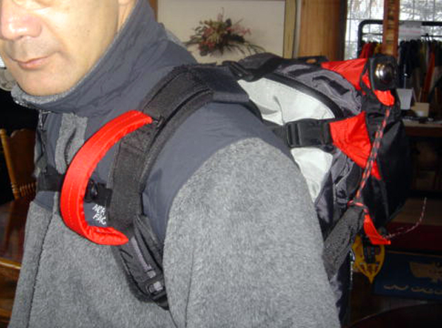 | 3.ザックが使いにくくなる? 既存のザックに取り付ける方式なので、すでに使用しているザックが使える利点はあるが、ザックによってはジッパーの開閉など、取り扱いに支障をきたす可能性がある |