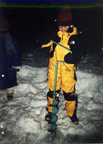 その後、氷に穴をあけるのだが、その装置が凄い!巨大ドリル!!カッコイイ!!!(写真3)