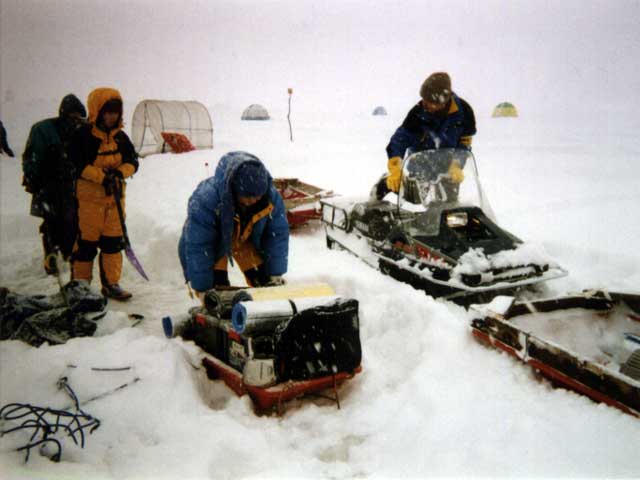 さあ、大きな橇に、釣り道具、テント等を満載して出発!(写真1)