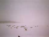 ベテランH舘さんは、眼光鋭く湖を一瞥した後、躊躇無くテントの密集地帯を避けて少し遠いがマニアックな地点に釣り場を決定した。(写真2)