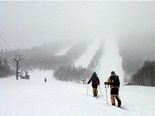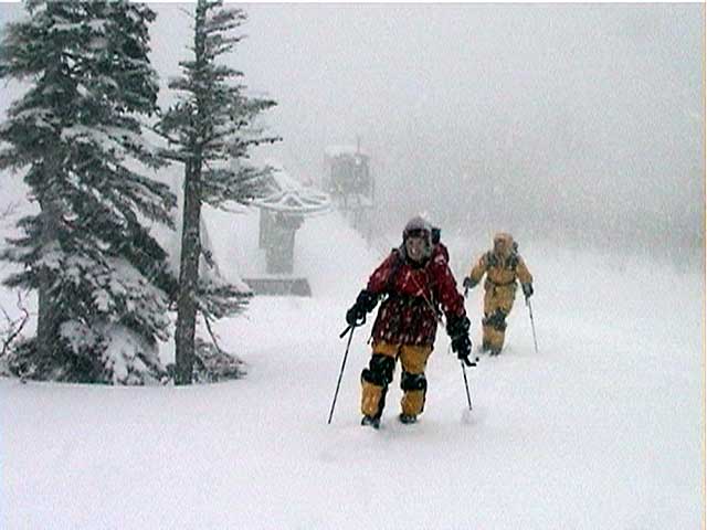 ダウンヒルコースは、直登がぎりぎり可能な結構きつい傾斜である。だがキックターンを行わなくても済むのが助かる。