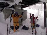 早速出発準備に取りかかる(写真1)。かわいい女性二人組のボーダーが「三段山クラブの旦那さんですか?捻挫大丈夫ですか?」と挨拶しに来てくれた。掲示板で今日の予定を知ったとのこと。華やかな山行になりそうだ。