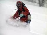 寒さにめげ、いつもより早めに宴会を切り上げて、いよいよパウダーに乗り出す(にやり)。