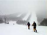 駐車場には他には山スキーヤーの車が二台とボーダーの車が一台駐車していた。悪天候の割には結構入っている。