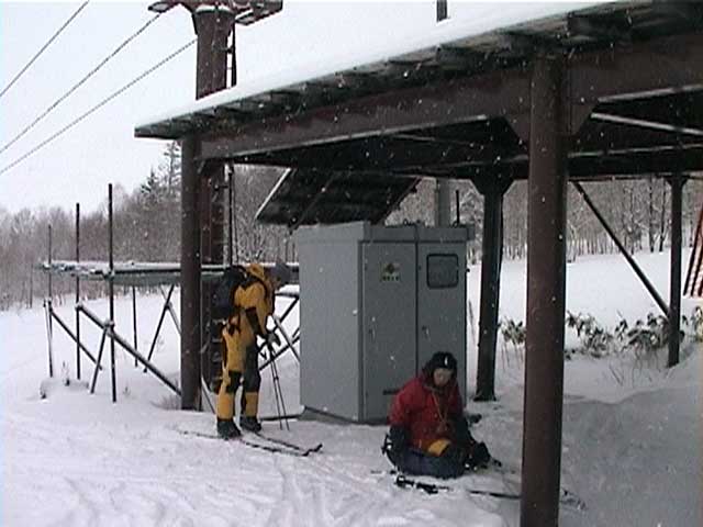 リフトの終点が恰好の休憩場所として利用できる(写真6)。閉鎖されていてもスキー場というものは、なかなか便利である。コースの境界が明瞭なので道に迷う心配もない。(デポ旗は残置してきた)