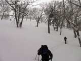 狩振岳スキーツアー 濃い樹林帯は素敵だが、 メンバー;旦那夫婦,K藤さん,長谷川さん, adachiさん,N川さん夫婦 計7名 |
