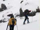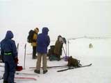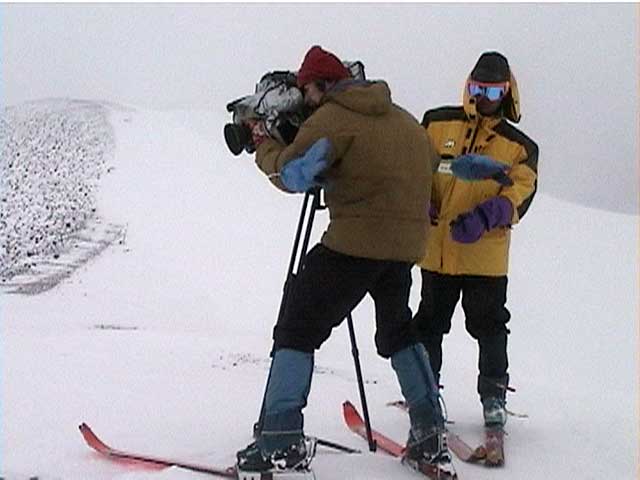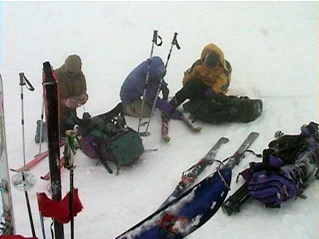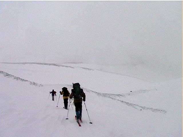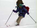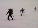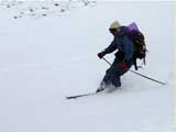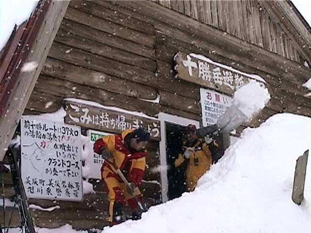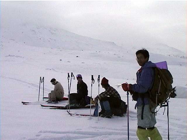 | スノーモービル被害の実態取材!なんと崇高な目的の山行だろうか! 今回はちょっと社会派な目的の山行なので、メンバーも渋い。 十勝岳スペシャリストのベテランH江さんと、ご存じ長谷川さん、NHKからはカメラマンのSさんとアシスタントMさん。ちなみに皆さん山スキーヤーで、テレマーカーは私一人。 天気予報では晴れだったのだが、望岳台に着いてみると十勝岳周辺は「どよーん」とした雲に覆われている。天候が心配だが、そのうち晴れてくることを期待しよう。 結果:撤退 天候:曇り〜ひどい吹雪 気温:-4〜-14度 積雪:十分 雪質:パウダーが浅く積もった最中っぽい堅雪。つまり、あんまり良くない。 コース:十勝岳(望岳台〜グランド〜十勝岳ピストン) 8:15 望岳台 |