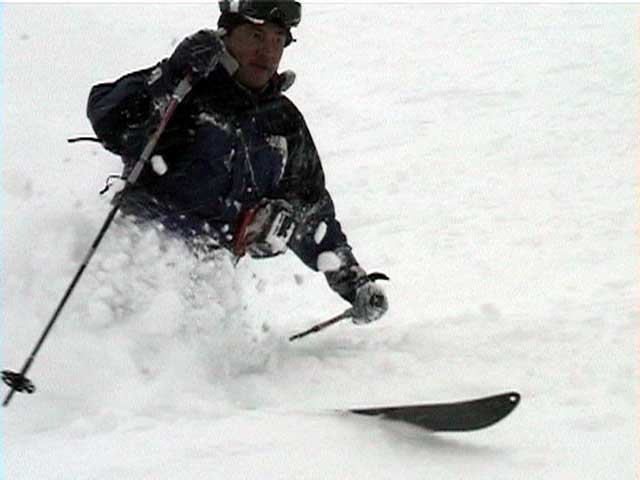 2.内足のがに股式小指エッジング(ピリッと辛い小技?) 3.前後のスタンスを狭め、上体を反らす事による深雪絶対転ばない秘法(旦那大助かり)