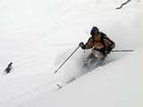 さあ、撮りっこ開始!N島さんはますますうまくなっており、秀岳荘杯クラッシク5位は伊達じゃない!我が三段山クラブ員は例によってゲレンデ弱さを発揮していたが、前回よりはうまく滑れたようだ(写真1,2)。 その中に、憑き物がついたような、尋常でない滑りの男が一人居た。初めて撮影される側に回り、舞い上がっている私こと、旦那である!