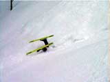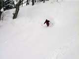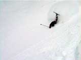 まずAさんが下りる。滑る様子は上からは見えない。急過ぎて見えないのだ。「うわぁぁぁ!」雪煙があがった。転んだかなー?「雪崩!雪崩!うおぉぉぉ!」(写真上)な、なだれぇ?やばいってぇ。。