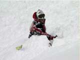 あたしは少し崖を楽に下りれるところに滑り下りた。が、あたしが滑った先から雪崩が発生していた。あたしが滑るコースに向かって雪崩が押し寄せてくる(写真3)。「ぎゃあああああ!」・・・この声をサウンドとして置きたいくらいだ。そうすればあたしの恐怖が伝わるだろう。