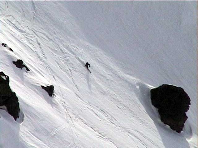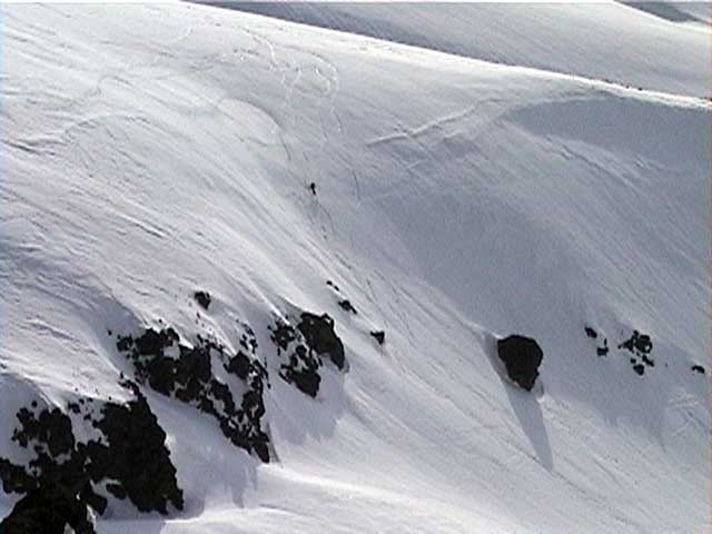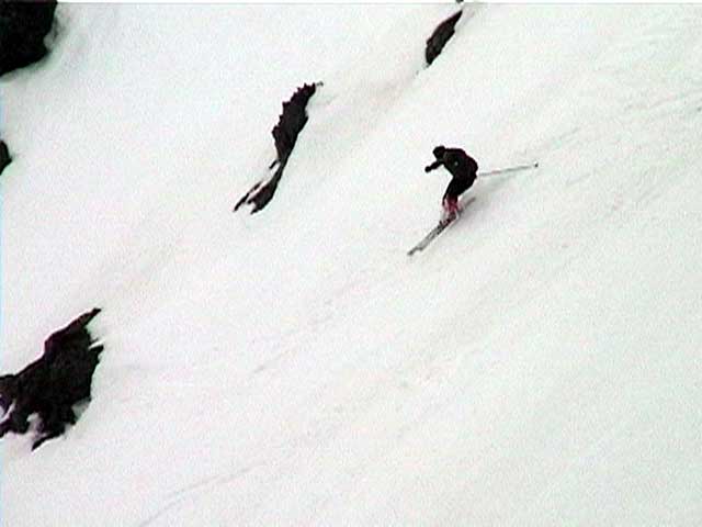| 写真 4 崖とA部さん | 写真 5 大滑降中のA部さん | ||||||||||||||