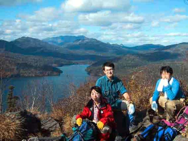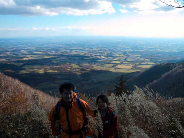 山頂からの眺めは、そんな苦労を吹き飛ばす程のものだった(写真9)。まさしく絶景。足下に然別湖が見渡せる。正面の山が南ペトウル山(写真10)。反対側には広大な十勝平野が見渡せる(写真11)。ただ紅葉が終わっていたのが残念だ。