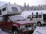 山から降りると、H川さん自慢のキャンパーが駐車していた(写真11)。早速おじゃまさせてもらう。キャンパーの中はとても快適で、お茶をごちそうになりながら、しばし楽しい時を過ごさせていただいた。H川さん、その節はお世話になりました。