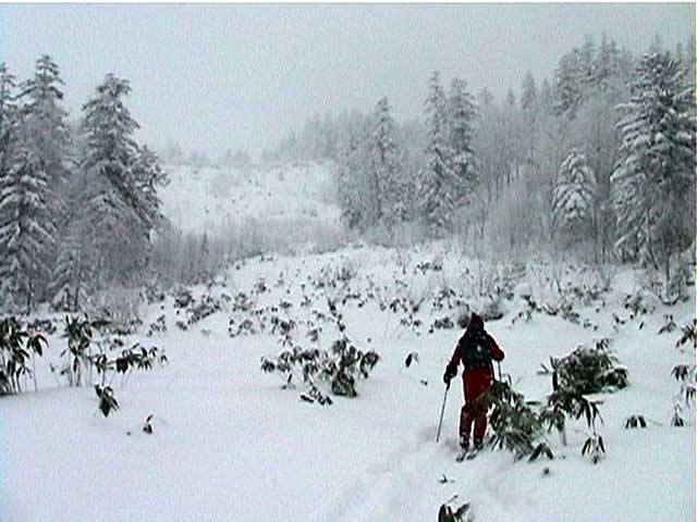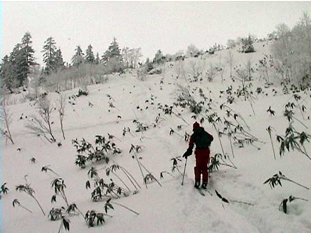 スキーツアー第三弾は、いよいよ三段山。ええ、分かっていたんです。雪がないことは。 でも、私達は三段山クラブ。玉砕覚悟で偵察に行ってみようじゃありませんか! で、玉砕してきました。地雷原手強いっす。 |