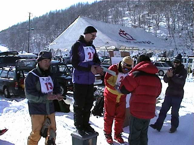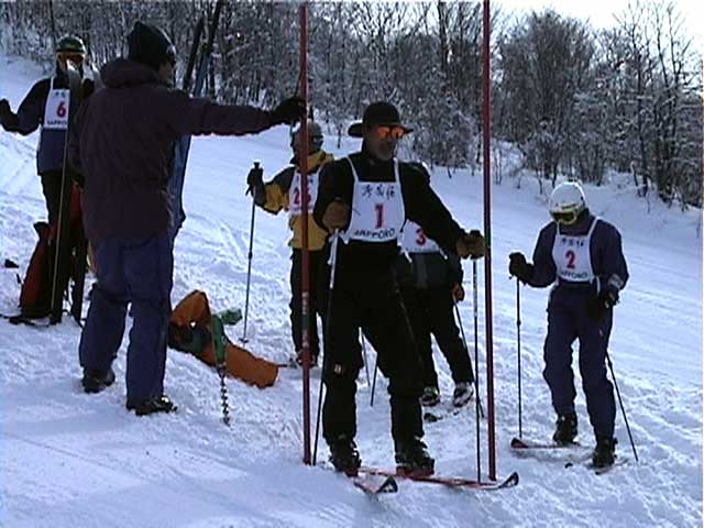 秀岳荘主催のテレマークレースに参加しました。 レースの後は、sandan yama 2000 クレージー編でおなじみのNAB(ノーザンアバンチュールボーイズ)の面々らと裏ピップで大騒ぎ。 |