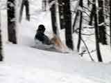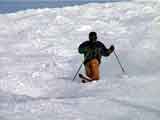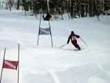 | 結果:旦那9位(鼻血)、ゆきこ20位(捻挫) 天候:快晴 風速:無風 気温:-15〜-20度 雪量:十分 雪質:裏ピップは、少し重めのパウダー 今日は楽しいノーザンテレマークスキーレース。アルペンでよく見るピリピリ・ギスギスしたレースじゃないぞ。 ビギナーも、玄人も自由に参加して楽しめるおおらかなテレマークレースだ。 場所は比布町のぴっぷスキー場。豪華景品がうれしい。 写真1:レースの参加者は22名。旦那は小学校の学校行事以来のレース参加なので緊張していた。 が、当日の雰囲気は和やかそのもの。スタート地点でも始終冗談が飛び交う。 ゼッケン一番の渋谷師匠の正当派クラシカルテレマーカースタイルを見よ! 写真2:当初からブービー賞を狙う!と宣言していたゆきこさんの滑り。フォームはまあまあだが、まったりとしたスピード。旗門から離れすぎ。惜しくも2位違いで20位。で、20位のくせに抽選で二番の景品(山スコップ)を当てた。ちなみに一番の景品はフィッシャーのテレ板。豪華だ・・ 写真3:スピード部門の表彰式。 一位は、エトリックスさん(外人じゃないよ)。 参考までに旦那は9位と意外と健闘。前日に塗り込んだ銀パラのおかげだろうか? 写真4:T&T部門(二回滑ったタイム差の少なさを競う部門)の表彰式。 一位は、クラシカルな滑りが光る外人さん。 二位は、NAB(旧北北海道不良テレマーク隊)特攻隊長のジンジン。 レースは午前中に終わり、午後からは無料講習会&体験試乗会が催されていたが、我々やんちゃ同盟(三段山クラブ&NAB)は、知る人ぞ知る裏ピップ(ピップスキー場裏の樹林帯)へ暴走しに行くことになる。 写真5:(^_^;)エトリックスさんの大ジャンプで幕開けした、裏ピップ藪樹林大暴走大会。 はっきり言って樹林が密でとても危険な裏ピップだが、良質なパウダーや適度なギャップが楽しい。 写真6:「イーヤッホウ!」Y田さんが吠える!乱立する木立の隙間を縫うように、信じられないスピードで飛ばす!そしてエア! 写真7:飛びっぱなしのエトリックスさん。どんなギャップも見逃さない。もちろん飛んだ後にそのまま木立の間をかっ飛ばしていき、また飛んでいる。命知らずなテレマーカー。めちゃカッコイイ。 写真8:もちろんNABも黙っちゃいない。枝をリンボーポジションで抜けるジンジン。たまに吹っ飛ぶように転ぶが、なぜか木には激突しない。見せ場多し。 写真9:藪林へ突入するキ様。 写真10:裏ピップを出たら、休まずにそのままコブにトライする面々。ジンジンは、この後キッカーで豪快にエアを決めた後、豪華に転倒。とにかく豪快。 写真11:最後は、ゲレンデトップスピード急降下大会でお開き。リフトが止まり誰も居なくなったゲレンデを端から端まで使っての高速ターンでかっ飛ぶ。 このジンジンのフォームを見よ! 写真12:エトリックスさんの極限カービングターン。傾いてます、手ついてます。 写真13:NABの切り込み隊長、U田さん。早い! 写真14:堀井さんの綺麗なフォーム。TUA SUMOを軽々と操る。 写真15:ちょうど夕日が映えて大雪山が綺麗だった。 少し寒さが厳しかったが、快晴下楽しい一日でした。 注)裏ピップは危険です。良い子は真似しないでね。 ちなみに、ゆきこさんは樹林帯でこけて膝を捻挫していました。旦那は鼻血をだしていました(まあ、頭が割れなかっただけ幸運と言えよう)。 |