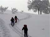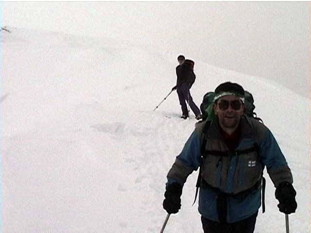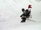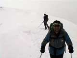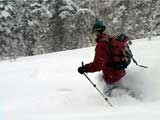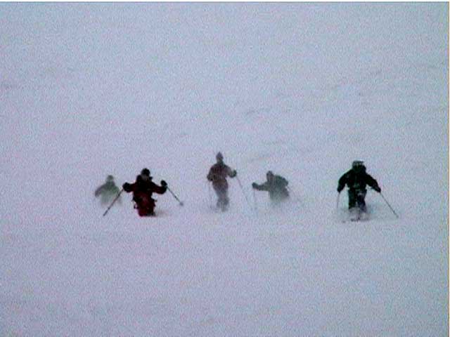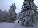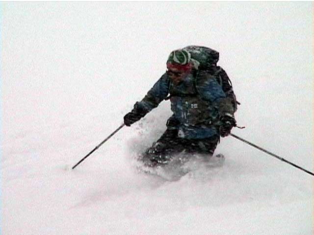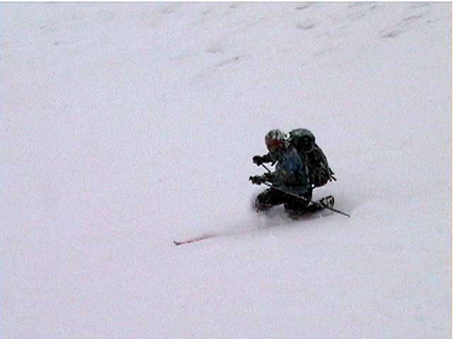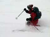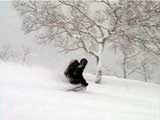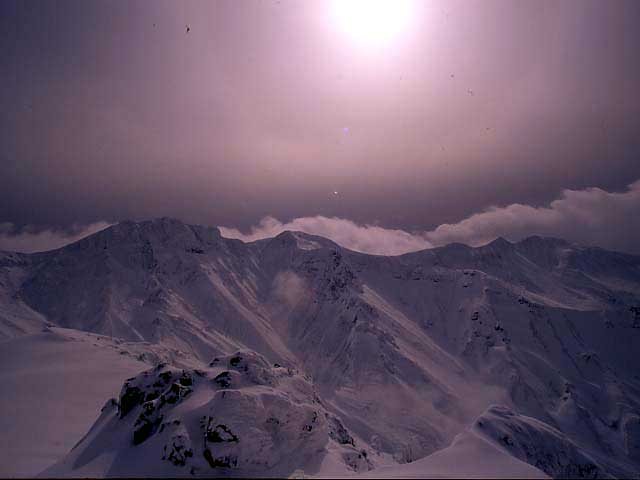 | 結果:登頂成功 天候:登りは晴れ、滑降時には雪のち晴れ 風速:ほぼ無風 気温:-3度〜-5度くらい 雪量:十分 雪質:良好なパウダー コース:白銀荘〜山頂 白銀荘 10時30分 晴れ 無風 気温-3度 本日のお客さんは、青森のゆーじさんと福島のやあまださん。天候は、最近にしては珍しく晴れ。途中の車内からも山並みが良く見えた。 しかし、問題点が一つ。 旦那がブーツを忘れてきた。正確に言うと干してあったインナーだけを持ち込み、アウターを忘れた。 こんなことは、はじめてだ。気が緩んでいたとしか言いようがない。 途中でスーさんに電話を掛けたり、富良野スキー場へレンタルのテレマークブーツが無いか問い合わせたりしたが、どうにもならない。絶望的な気分で白銀荘に到着。 温泉に浸かっているか、白銀荘でレンタルしているスノーシューを履いて上がってみるか。どちらにしても、とても冴えない。 ダメもとで白銀荘のカウンターに聞いてみた。「すみません、余っているブーツありませんか?あ、サイズは28センチです。」(^_^;)驚いたことに、「あるよ、山スキーで良いかい?」との返事。 白銀荘の次長さんの個人装備である山スキー(写真1)を貸してくれたのだ。ありがたい。ただし、ブーツのサイズはどうみても27センチくらい・・・なんとか足は入ったが、痛い。仕方なく靴下を薄いものだけにして我慢する。 さて、出発してみると(写真2〜4)天候も良いが雪も良い。先行者の立派なトレースがあったので、ラッセルも無く順調に登る。 心配していた二段目から上の様子は、前回とはうって変わって、ハイマツはほとんど隠れていた(写真5)。 まったく、本シーズンでも一二を争うほどの好条件に恵まれた日だ。皆嬉しそうだ。 あっ、旦那だけ浮かない顔をしている。やっぱり足が擦れて痛いのだ。しかし、これは自業自得。 実は、途中の記録があまり取れていない。それほど旦那には余裕が無かったということだろう。 途中、十勝岳、富良野岳共によく見えた。なんとなく旭川から来たというスノーシュウの方と一緒に登る。 いつも難所の四段目も、クラストしていなくて登りやすい。ただし、薄いパウダーの下に堅いバーンがあるので、油断するとスリップする。 さて、いよいよ山頂・・・だが、ちょうどガスがかかってきた。稜線に出ると(写真6)ガスの向こうにうっすらと上ホロの壁が見え、足下の絶壁の底では安政火口が静かに噴煙をたなびかせている。 この高度感はなんど味わっても良い。 13:10 三段山山頂到着(写真7は、TOSHIさんが提供してくれたもの。) 直前のアクシデントで参加できなかったmakinさん、今度こそお待ちしております。 |
