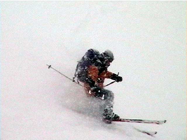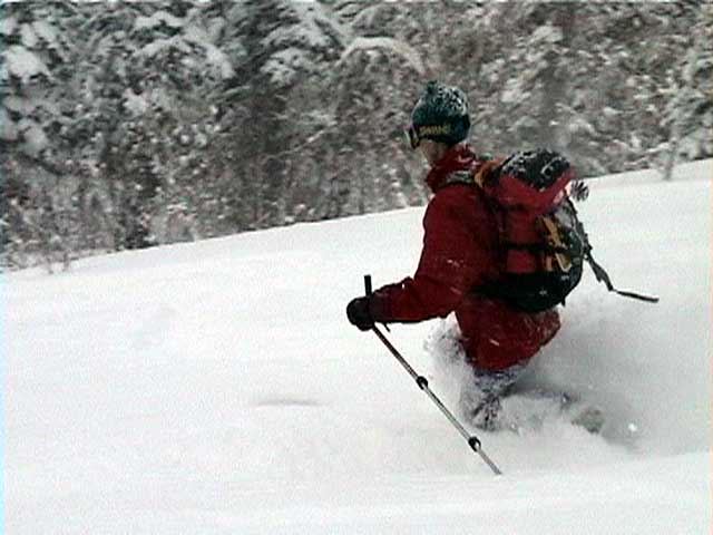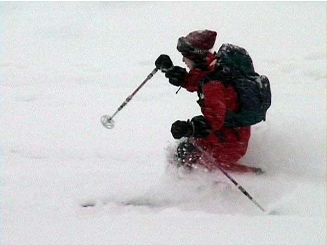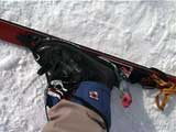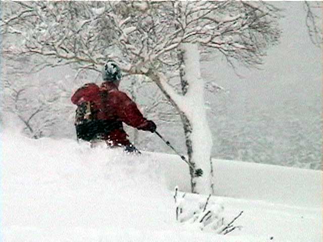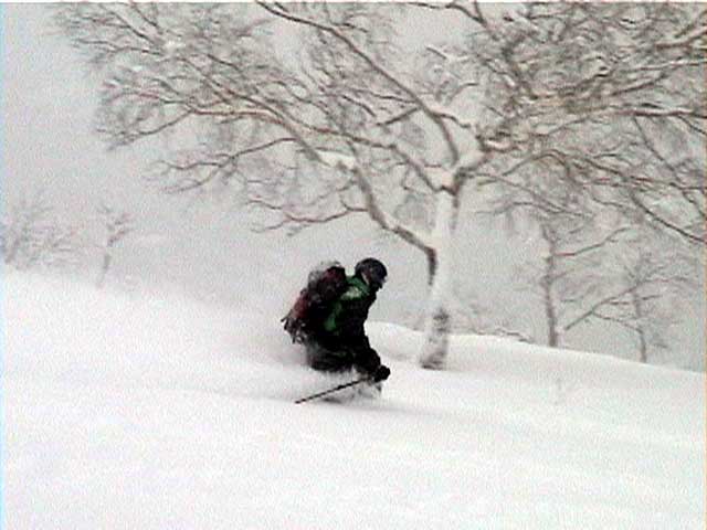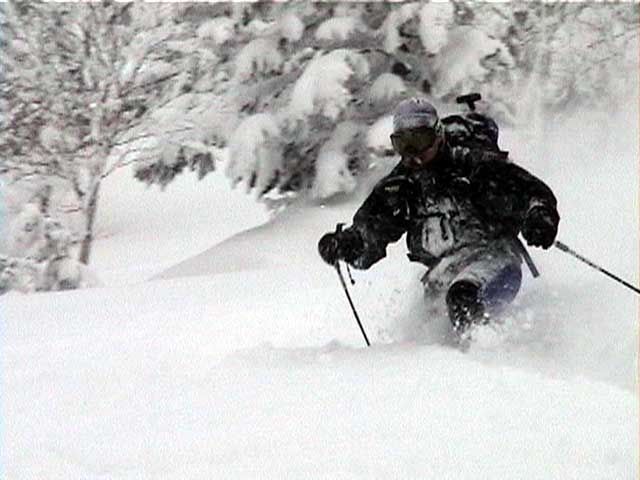 おお!珍しく晴天だぞ、雪も良い!!しかし、ブーツを忘れた旦那。こいつあ今シーズン最大の危機だ! |