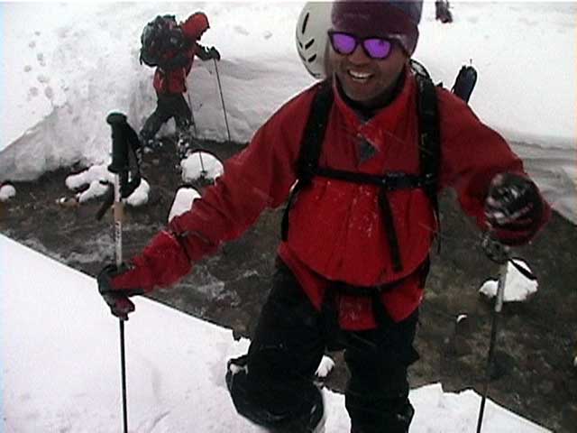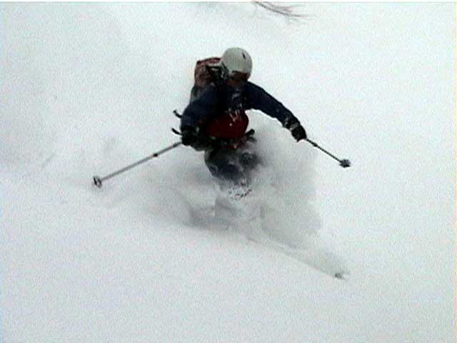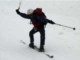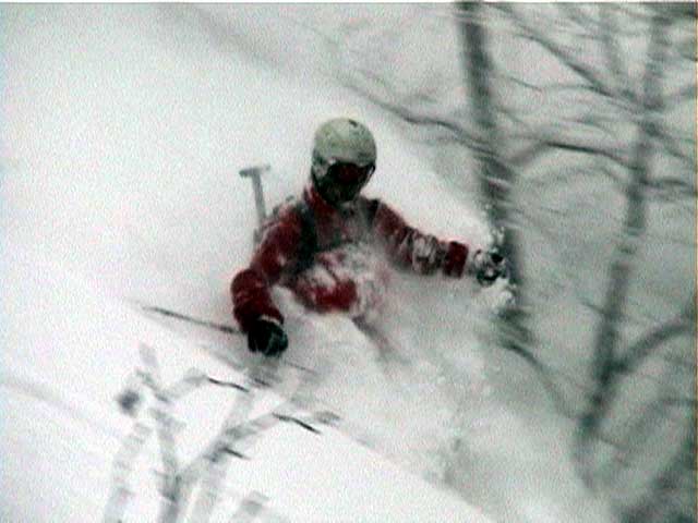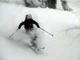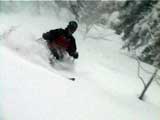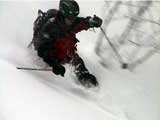 十勝山系蹂躙ツアー3日目は、あいにくの悪天候。しかし、悪天候なら悪天候なりに楽しみことができる。 富良野岳の風の無い谷には、最良のパウダーが待っていた! |