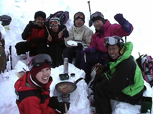 今日は焼き肉だ。 いや、スキーツアーなのだが、メインは焼き肉なのだ。 まじめな山屋さんに怒られそうだが、これが三段山クラブの実態なのである(え、知ってた?)。 |