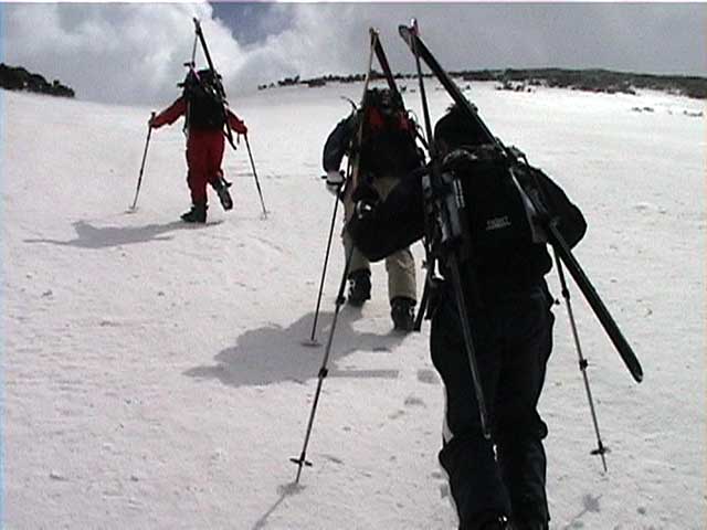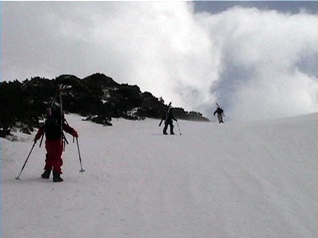 今回は、久しぶりに少数のツアーとなった。強風が予想されていたが、本当に強風でクラストが酷かった。 そしてなにより・・・雪が消えていた。 |