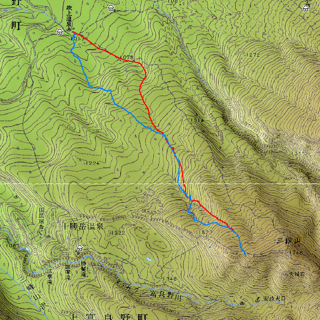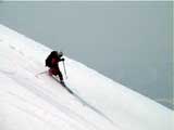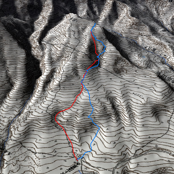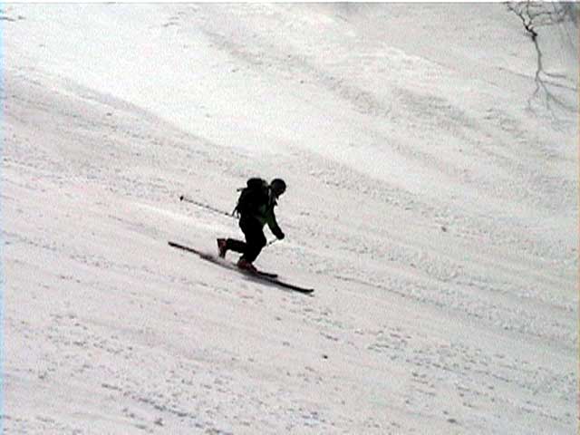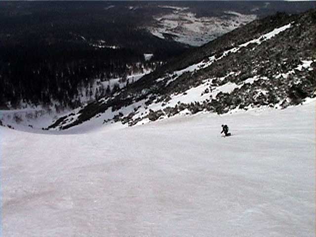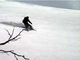 | 結果:1670m地点で撤退 天候:晴れ時々くもり 風速:4〜10メートル 気温:2〜3度 雪量:十分 雪質:上部はウインドクラスト、下部は重い湿雪 コース:白銀荘〜三段山 今日も焼き肉セットを担いで三段山へやって来た三段山クラブ。 下界ではすっかり雪が溶けて夏道状態だが、山間部の道は氷結していてよくスリップした。 スキー中毒者は、ゴールデンウイーク明けまでスタッドレスタイヤは欠かせない。 三段山の上空で、雲が凄いスピードで動いているのが見える。そうとう風が強そうだ。 9:50 白銀荘出発 天候:曇り 風速4m 2度 予定通り出発したが、まず驚いたのが雪の消え方。前方に見える前十勝がずいぶん黒く見える。ぜひ先週の山行記録の写真と比較していただきたい(写真1)。 この分では、ノーマルルートはかなり雪が不足しているだろうと判断し、雪が残っていて風の影響も受けにくいと思われる、ノーマルルートより西側の谷を詰めることにした。 このあたりの雪は重たく湿っていて、ラッセルが無いのは助かる。 10:36 森林限界 天候:曇り時々晴れ 風速7m 3度 順調に、いつもより早いタイムで森林限界に到着(写真2)。天候は目まぐるしく曇ったり晴れたりしていたが視界は良く、富良野岳が良く見えた。 このあたりから、徐々に風が強くなってきたので、予定通り西の谷へ向かった。ノーマルルートはルート上の雪は切れていないようだが、かなりハイマツが顔を出しているようだ。 谷へ入るために尾根をトラバースしたのだが、ウインドクラストしていてスリップしやすく、ゆきこさんが音を上げてしまった(「もう、いやーん」とか言って)。まあ、滑落しても大したことは無いとは思うが、念のために早めに谷へ降りて、直登気味に谷底を詰めていった。 1400m地点あたりから傾斜が増し、さらにクラストしてきたので、板をザックに取り付け、ツボ足でキックステップを切りながらの登りに切り替えた。 焼き肉装備に板の重さが加わったザックは、ずっしりと重たく、我ながら足取りが重たい。 年のことは言いたくないが、若いナガさんとT塚さんは足取りも軽く登っていく。ツボ足は体力の差がモロにでるなあ。 佐藤さんだけは、ベテランらしいテクニックで、シールでスイスイと登っていく。こちらは年の功だろう。 突風に背中を押されるようにして、稜線を目指す(写真5)。三段山ピークへ続く尾根はハイマツだらけだったので、早々にピークをあきらめて尾根の手前の平坦な斜面に荷物とスキー板をデポした。 12:00-12:10 1670m 天候:曇り時々晴れ 風速10m 3度 ストックだけを持った空身で、丁度12時に尾根へ到着。 しばし、絶景(写真7、8)に見とれながら休憩したが、稜線には風速10メートル以上の風が吹いており、体が冷えてきたので早々に下山を開始した。 ここから望む三段山のピーク付近は、かなり雪解けが進んでおり、この有様(写真8)。ハイマツの間を縫うように登山者が登っている様子が見えた。 滑降を開始したものの、シュカブラ気味にウインドクラストした斜面は手強い。下手に転ぶと滑落の危険があるために、谷の上部は慎重に降りた(写真9〜11)。 かなり面白くない状況だったが、谷の風下面に僅かに良質な雪の残る斜面を見つけ、一瞬パウダーを楽しむことができた(写真12〜15)。ひょっとしたら、今シーズン最後のパウダーか? 森林限界近くで、お約束の焼き肉を楽しんだが、風が強くて体が冷え気味。ナガさんは風邪が悪化する始末。 下部の樹林帯では「妖怪板掴み」に散々板を掴まれ、久しぶりに何度か大転びした。その時に旦那は唇を切って流血し、後日かなり唇が腫れてしまった。 ヘルメットを被っていても、顔は無防備なことを思い知らされた。テレマークって、格闘技の一種かもね。 14時25分 白銀荘到着 天候:曇り時々晴れ ボロボロになって白銀荘に到着すると、単独行で三段山に入っていた「山女、酒と飯を担いで今日も行く!!」でお馴染みの山女さんと遭遇。気さくで素敵なお姉さんだった。山女さんと出会えたことが、散々だった三段山での最後の救いだろうか? 感想: 疲れたー!強風って、体温とか、元気とか、体力とか、良い雪とか、そんなものをなんでも吹き飛ばすねえ。 それよりも、雪の消え方が深刻だ。先週と比較すると劇的に雪が溶けている。 今すぐ滑れなくなるということは無いが、このままではゴールデンウイーク中に滑る雪が無くなってしまうかもしれない。 |