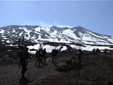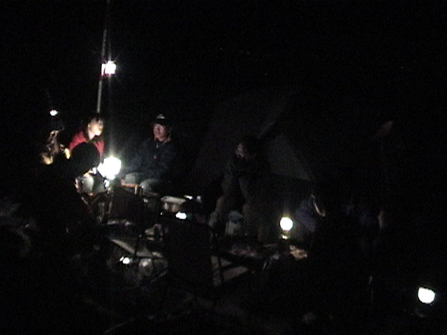 4時から始まっていた宴会。山海の珍味、焼き肉、白濁酒、雪で冷やしたビールで宴会だあ。