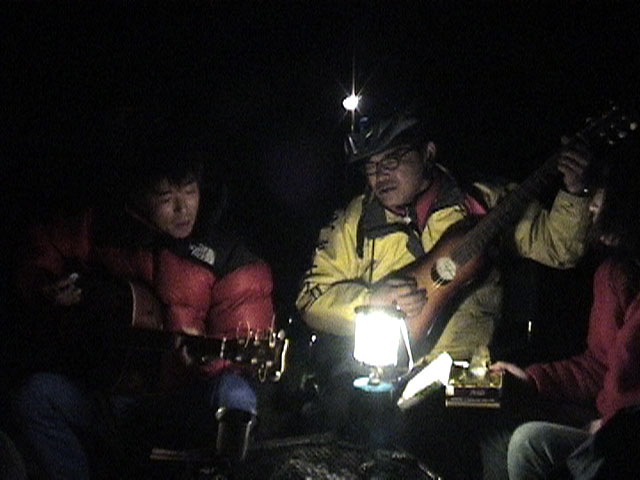 ぎょてれ2号、7号の熱唱で夜は更ける。曲はもちろん「雪かきロックンロール」 あれ?もう二時過ぎだ