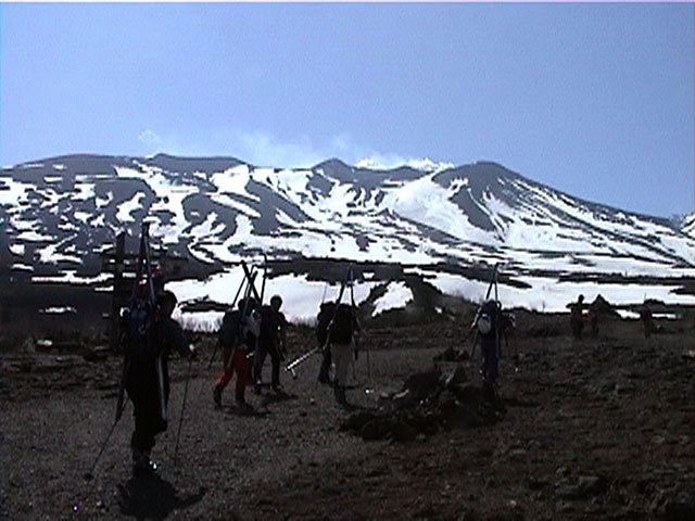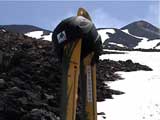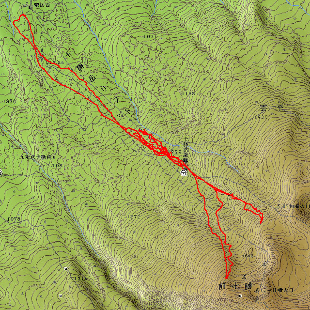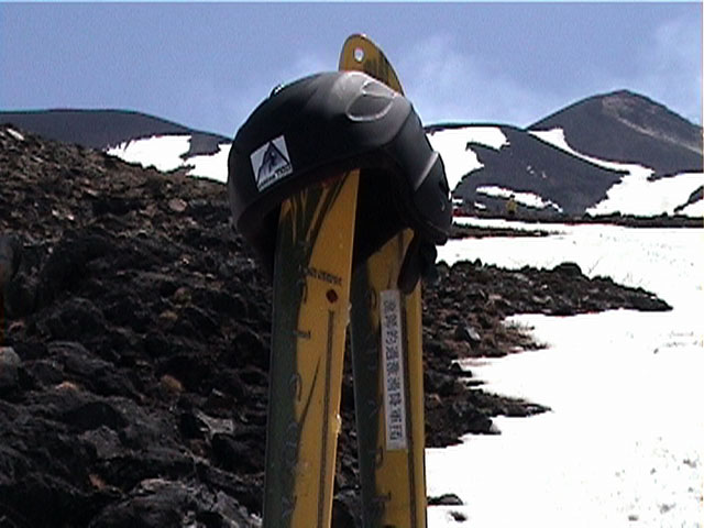 十勝避難小屋の付近で試乗会開始。とりあえず、ぎょてれ7号が激しいショートターンで飛ばす。