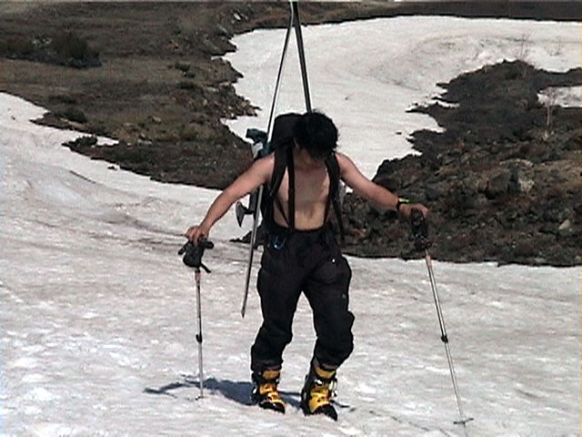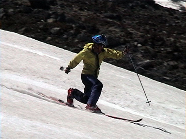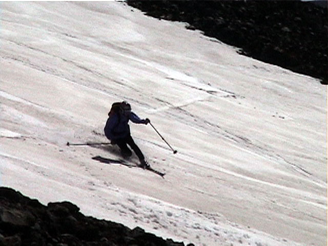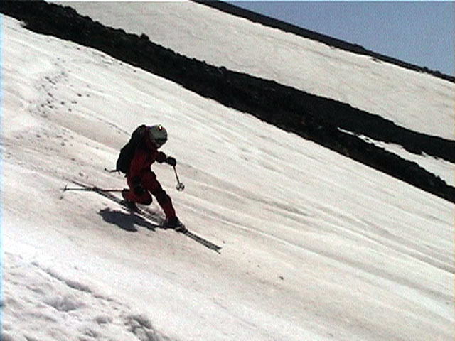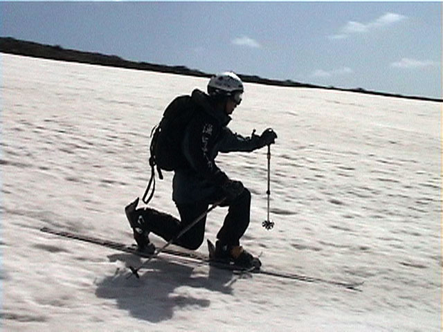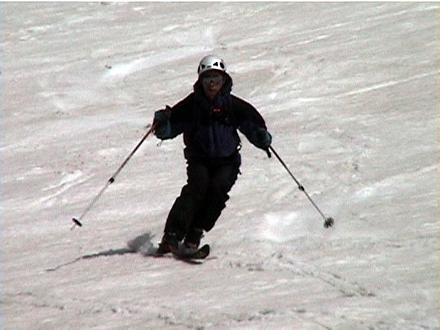 珍しい旦那の滑降シーン、変態チックなフォームですな。