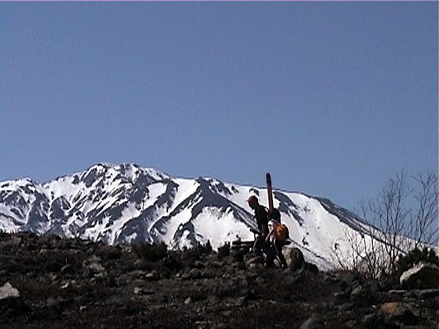 谷を挟んだ反対側の小ピークから、ぎょてれ達の滑りを激写。格好いい!過激!!