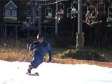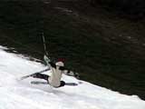 | 結果:滑降成功 天候:晴れ 風速:0メートル 気温:10度 雪量:30センチ程度 雪質:超ザラメ コース:オーンズスキー場 小樽市春香町のスキー場「スノークルーズオーンズ」 オーンズって、フランス語で11っていう意味なんだって。したがって、オープンは11月11日。積雪に関係なく、人工雪でこの日に確実に滑らせてくれるありがたいスキー場だ。 振り返ってみると、我々は毎シーズンこの時期に黒岳や旭岳へ出かけて行っては滑りの感覚を取り戻せないまま、玉砕を繰り返していた。そろそろ学習しなくては。 やはり、一発目の滑りはゲレンデで感覚を取り戻したり、装備のチェックをしておこう。で、オーンズ遠征となったわけである。 11:30 オーンズスキー場へ到着 天候:晴れ 無風 10度 9時オープンだが、どうせ混んでいるし、マスコミもうるさそうだし・・・遅めに時間をずらして到着。 青々とした芝生の斜面に、一筋の雪・・・かなり不思議な印象のオーンズ(写真1)。 幅30メートル、長さ500メートルとの触れ込みだが、幅は狭いところで15メートル程度。長さは・・・本当に500もあるのかなあ。感覚的には300メートル。 そんな斜面に、蟻のように人の群が・・・昼飯時になれば空いてくるとの読みで、とりあえず早めの昼食を取る。 12:30 いざ、ゲレンデへ 今日は、4時間券が1500円!ありがたい。 リフトの前は、旦那が今までに見たこともないような長蛇の列。 15分ほど並んで、やっと久しぶりにリフトの感触を楽しむことができた。 ゲレンデの状況は大粒のザラメで、やたら板が走る。やはりコースは人数の割に狭すぎる印象(写真2〜5)。 頂上で一息つく面々(写真6)。スキーヤーとボーダーの割合は、この時で1:1くらいだったが、後半はボーダーの割合が多くなっていった。 意外と多かったのがショートスキー。テレマーカーは、我々だけ・・・(^_^;)。 旦那は、昨日買ったNew T2(写真7)の乗り心地をじっくりと確かめたかったのだが、この狭いゲレンデでは、なかなかそんな余裕が無い。 とりあえず、ファーストインプレッションは・・・ ガルモントベローチェと比較して、つま先のフレックスが堅目で、テレマークポジションをしても疲れにくい。エッジングも行いやすい印象を受けた。斜めカットになった蛇腹部分の効果は、まだ不明。 バックル関係は妙にコンパクトになってしまい、若干扱いづらい。 全体的には、とりあえず大きな問題は無かった。好感触である。 写真8は、秀岳荘ヤッケの上下とメットでビシッと決めた旦那(苦笑)。 T2のせいか、以前よりフォームが高くなった気がする。 板は頂いたTM24を使用。とても切れる板で快適だ。高速域での挙動を確かめたかったけど、こんなところでそんな事をしたら大事故必至なので、我慢我慢・・ リーシュには、ジルブレッタの山スキー用流れ止め紐を使ってみた。 これが大正解。装着・脱着ともにグローブを外すことなく大変スムーズに行える。 Pollyさん(写真9)、ナガさん(写真10)、toshiさん(写真11)、の華麗な滑り。皆さん見事なテレマークポジションを決めてくれた。 ゆきこさん(写真12)も、なかなか安定した滑りで、この狭いゲレンデの端から端を使っての大回りターンを楽しんでいた。 もちろん、お約束の大転倒(写真13)も忘れない。コース脇にザラメの雪が砂丘のようになっている部分出来ていて、そこへ突っ込むと投げ出されるように転んでしまう。 このとき、雪を食べてしまったゆきこさんの感想は「しょっぱい・・・」だそうだ。 午後二時頃からだいぶ空いてきて、リフト待ちも7〜8分になってきた。しかし、ゲレンデコンディションも荒れてきて、コブやアイスバーンが手に負えなくない。コブの間から土も顔を出してきて、板のソールが心配だし、もう帰ろうか。 15:50 撤収 まだリフト券は有効だが、早めに引き上げることにした。 旦那は汗だく。気温10度で秀岳荘ヤッケの上下は暑すぎた。傍らには Tシャツで滑ってるボーダーもいるのだ!ギャップありすぎ。この時期の服装は難しい。 スキーのソールを水でよーく洗ってから、帰還。うーん疲れた! 感想: 人工雪なんてつまらん!と思っているそこの貴方。いや、なかなか良かったですよ。本当に。 ただ、狭いゲレンデをレーサースーツとヘルメットに身を固めたお子様軍団とか、飛び系ボーダーのお兄さま達がすっ飛ばしているので、初心者が行くところではないですね。僕らのんびりテレマーカーもかなりやばかったです。何度衝突しそうになったことか・・・そういう意味で、ヘルメット必携だと思いました。 |