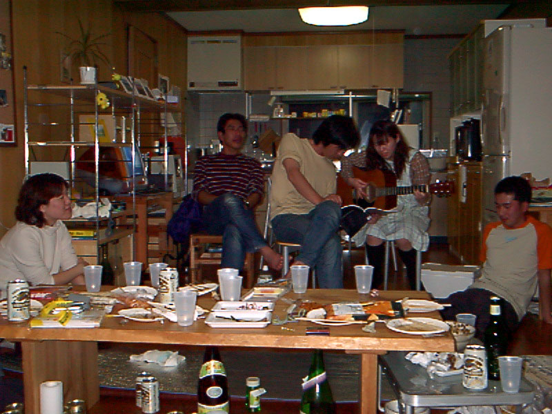 | 結果:二日酔い 天候:雨 風速:? 気温:なま暖かい 雪量:全然ダメ 雪質:言うまでも無し 今回は、四国を代表してやってきたあるかんさんを、北海道勢の総力をあげて迎撃するイベント敢行した。が。 24日 三段山偵察・宴会 天候:晴れ 無風 ここ一週間ほどさっぱり雪が降らなかった。一応三段山を偵察してみたが(写真1,2)、案の定雪が少なくて山スキーは無理。 白銀荘の管理人も、半月くらいは積雪が遅れていると言っていた。 無理矢理前日に登っていった物好きな山スキーヤーが居たということだが、入山届けで確認したら、それは旦那の師匠であるH江氏だった。師匠・・・気持は分かるけど、これじゃスキーは無理ですゼ。 さすがの師匠も、入山届けの備考の欄には、「山スキーには時期尚早」と書いてあった。 十勝岳から下りてきた登山者に聞くと、「十勝岳避難小屋から下なら山スキーが可能ではないか?」とのことだったが、歩くことはできても滑降は難しいだろう。 まあ、そこら辺は予想の範囲内だ、とにかく今宵は宴会だ! 旦那の家にて宴会 総勢11名で宴会(写真3)!三段山クラブ員や帯労テレマークチーム(TTT)の面々などが集まり、秘蔵ビデオ上映や、テレ話で盛り上がった。 ここで登場したのが、佐藤@富良野さんが持ち込んだアルペンリリース付きテレビンディングの試作品(写真4)。 最近佐藤さんおとなしいな・・・と思っていたら、密かにこんなとんでもないものを作っていたのだ! ご覧のように、アルペンのビンディングを改良し、ブーツの代わりに板に取り付けた3ピンのテレマークビンディングをはめ込み、アルペンのリリース機能を使おうという代物。 さすがにアルペンのヒールピースは取り去ってあるので、前方解放の機能は無くなるが、なかなか興味深い。 未だ完成度の高いテレマーク用リリースが登場していないことに対する、佐藤氏のいらだちが伝わってくる逸品である。 まだ試作中ということで、その効果のほどは不明だが、引き続き追跡調査をしていきたい。 旦那は、次期ビンディングに、7tmとこの佐藤オリジナルビンディングを比較して、良い方を使おうっと。 そんなこんなで、宴は盛り上がり、 主賓あるかんさんが、除々に壊れていく様子(写真8〜10)。 そのうちフォークゲリラも出没し、さながら歌声喫茶の様相を呈してきた(写真11〜13)宴会場。 もー何がなんだか分からない状況になって、先に旦那はダウン。 どうやら午前二時くらいまで宴は続いていたらしい。 25日 富良野スキー場へ・・・ さあ!メーンイベントである、富良野スキー場テレミーティング。 現地では、漁師テレマーカーご一行や、きたさん、その他と合流予定! 空前の規模のテレマーカー大集合となる。 しかし、二日酔いの頭を振りながら準備をしていると、雨が降ってきた。 そして、富良野スキー場の現地からは「雨でクローズ!」という悲鳴のような電話が!! 呆然と立ちつくす我々(写真14)。 この燃え上がった情熱を、誰かなんとかしてくれ〜 いろいろ悪あがきをしたが、結局上ホロ荘の露天風呂へ入りに行った。 なぜか、上ホロ荘は吹雪になっていて、それだけが救いだった。もっと吹雪け! あるかんさん・・・すまねい! 感想: ん〜久々に大空振りでした。ここまで雪がないと笑っちゃいます。 今(27日)は、今までの分を取り戻すかのように雪が降っていますが。 週末はどうなるかなあ。 |