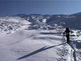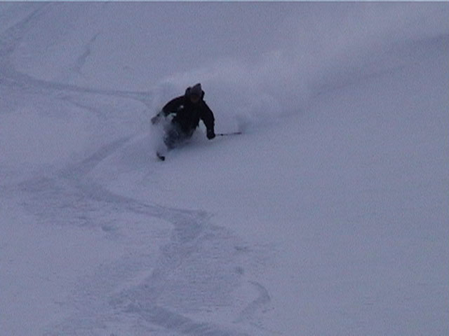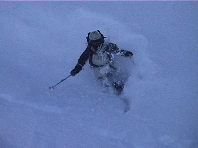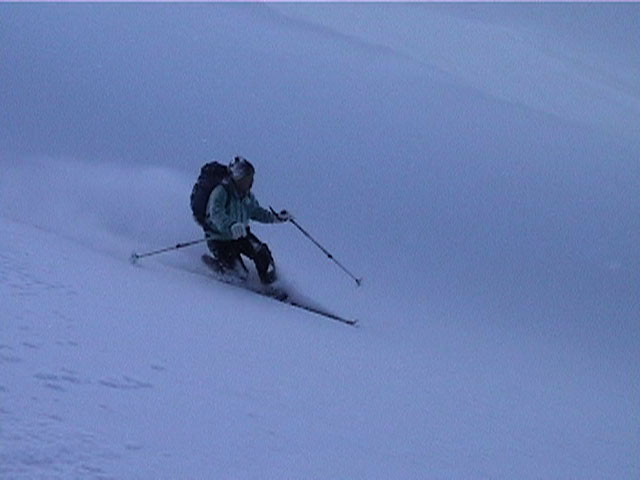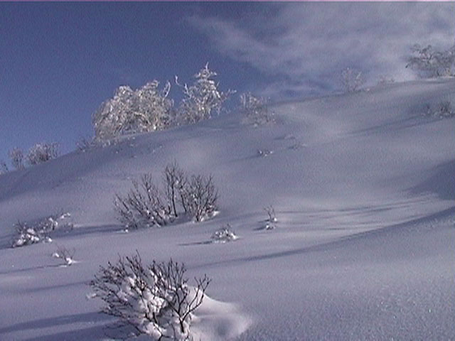 雪質:下部は軽い粉雪、上部はクラスト状態だが、谷筋はパウダー