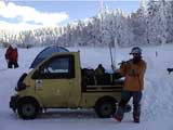 漁師のミゼット登場(写真1)。釧路からやって来たミゼットは、豪快にホイルスピンしながらキリキリ舞していた。白銀荘で偶然出会ったY田夫妻は、富良野岳へ登ってみるという。さらにマロリークラブの面々も出現し、三クラブが共に三段山を目指すことになった。今日も賑やかな三段山になりそうだ。