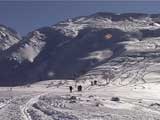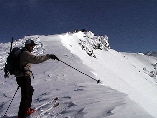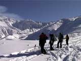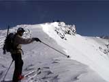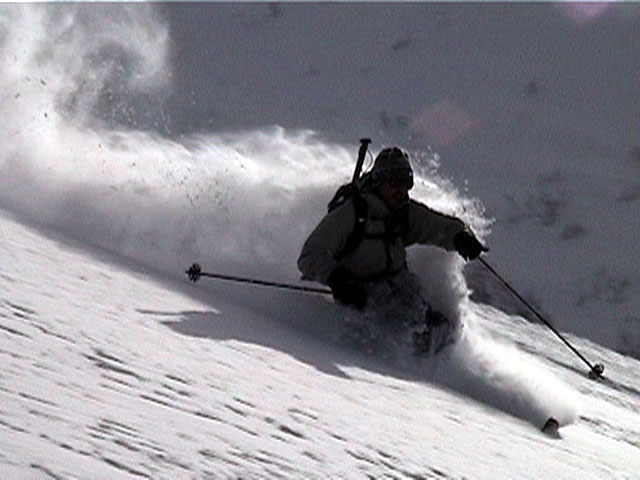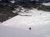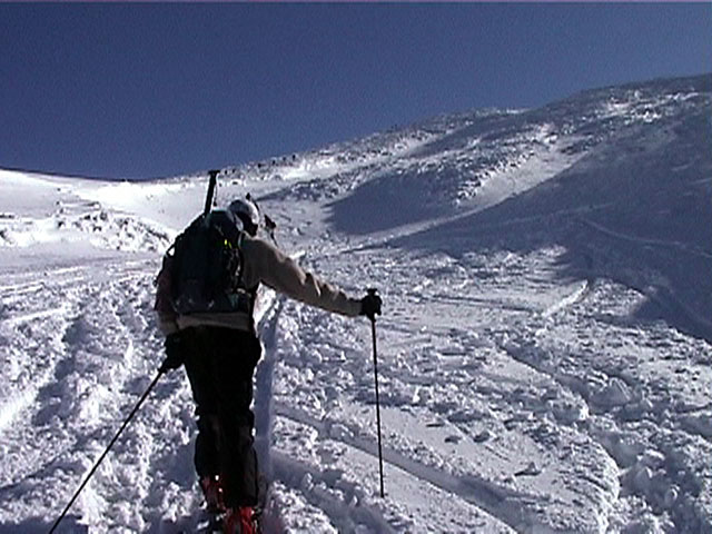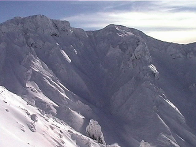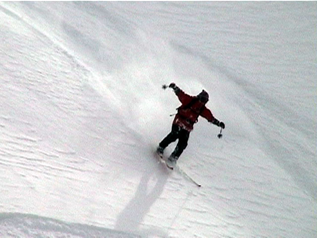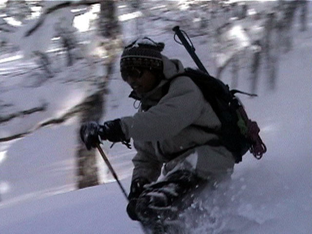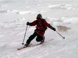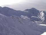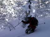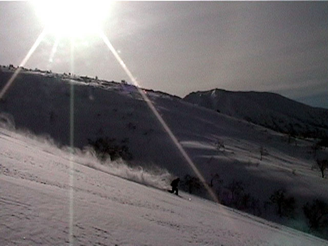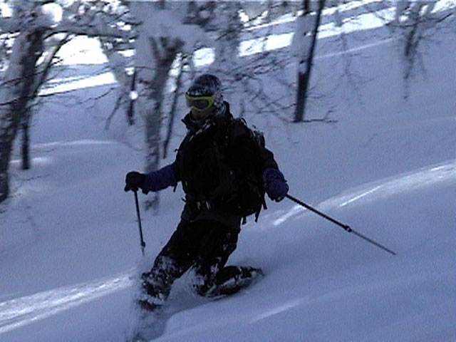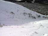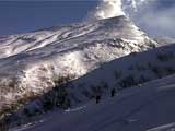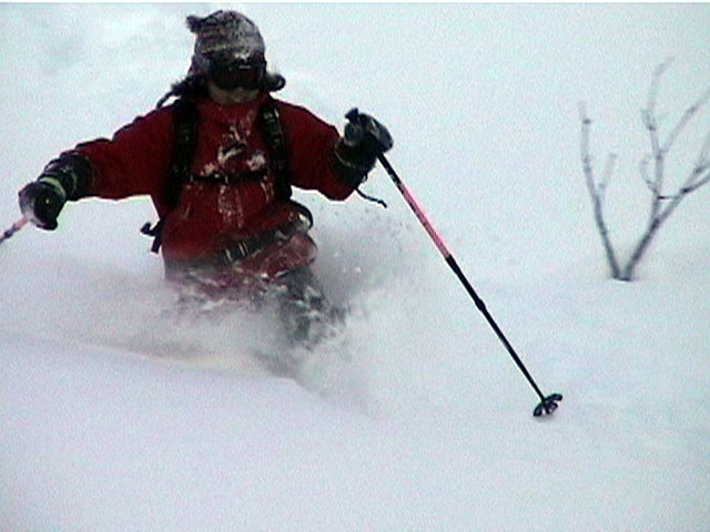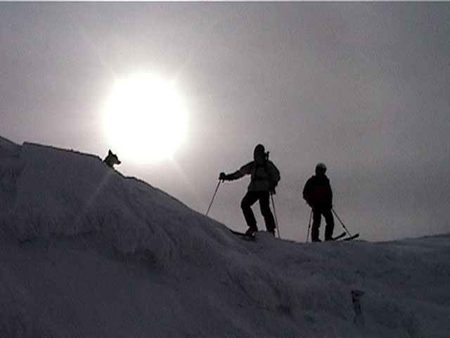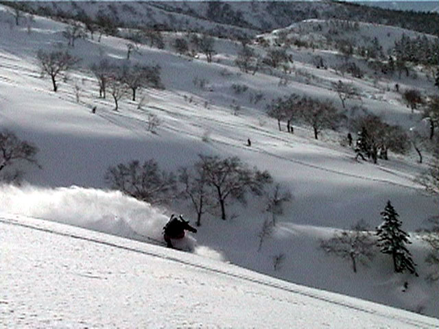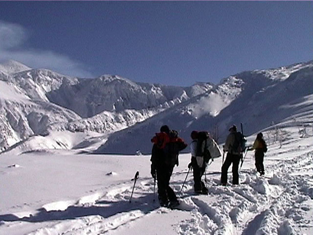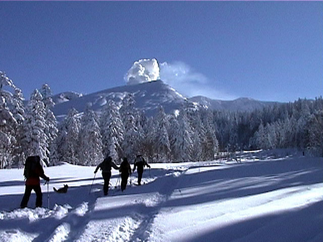 | 2002年1月20日(日) 三段山スキーツアー(田中家に・・・完敗でした) 三段山クラブというよりも、旦那夫婦は、田中ファミリーと快晴の三段山へ行って来ました。駐車場でtoshiさんと偶然一緒になり、二段目で漁師達と偶然一緒になり・・・結局7名+一匹のツアーとなりました。 登りでは、何故か両家の威信を懸けたスピード競争となり、デッドヒートの結果二時間4分で山頂へ到着。勝敗は、山頂直下で「休ませて!水飲ませて!」と哀願した大西家の惨敗。滑りも惨敗。田中ファミリー恐るべし。 沢山の登山者が居て(K宮さんや、スノースクートの人も)、すでに夏道コースはズタズタだったので、混雑を避けて西の谷を滑降してきました。これが大正解で、おいしいパウダーをお腹一杯食べてきました。 結果:登頂成功 天候:快晴 風速:0メートル 気温:-15度 雪量:十分 雪質:若干重めのパウダー コース:白銀荘〜三段山 登り:夏道コース 下り:西の谷 白銀荘10:00-10:12一段目-10:35二段目10:45-11:08三段目-12:04三段山山頂12:28-13:43白銀荘 メンバー:旦那、ゆきこ(登りで音を上げた)、田中パパ、ゆう、ミックス、toshi、漁テレ7(かっちやん)、漁テレ11(カトゥ)合計8名+一匹(順不同 三段山クラブ&田中ファミリー&漁師テレマーカー) |