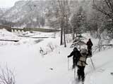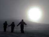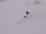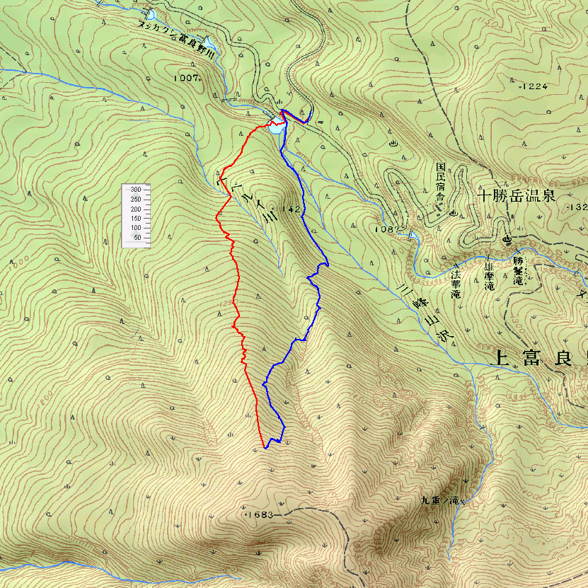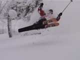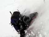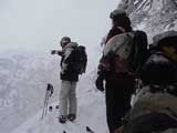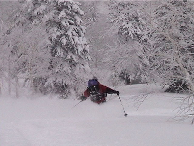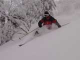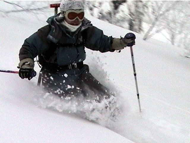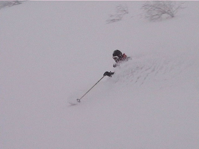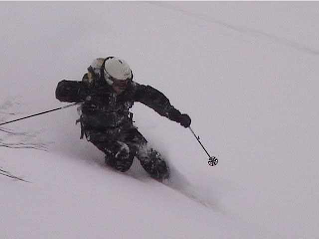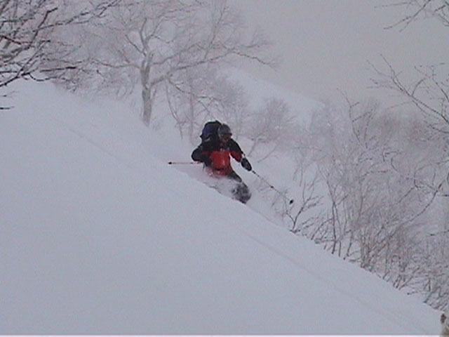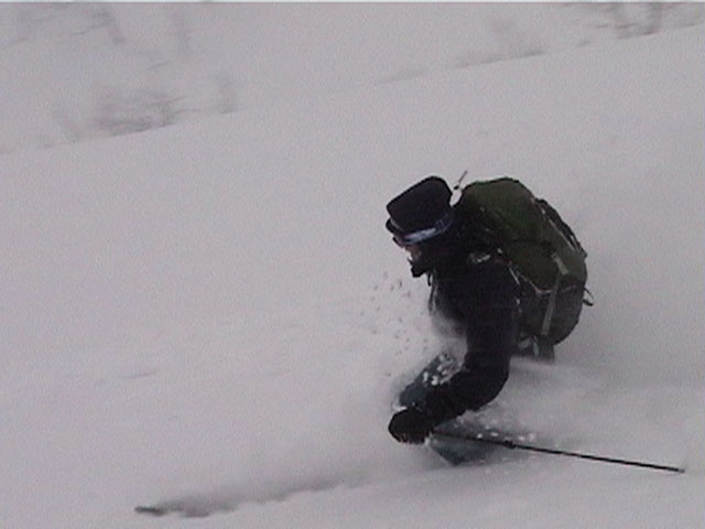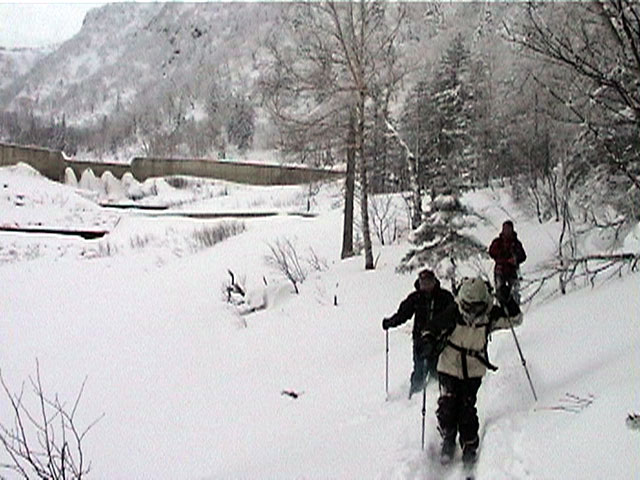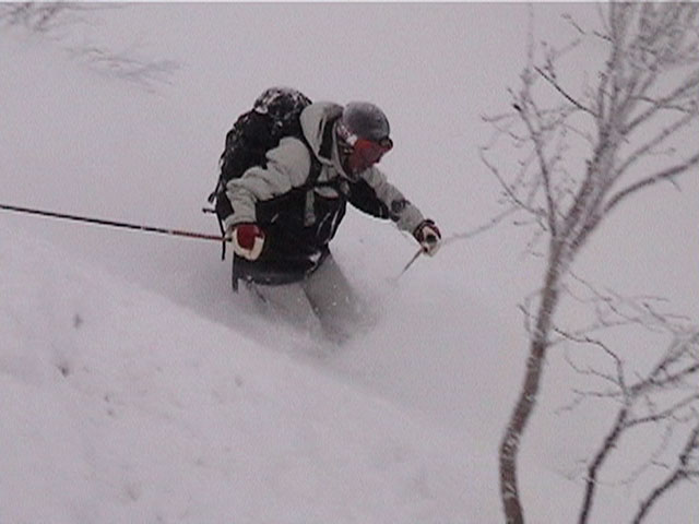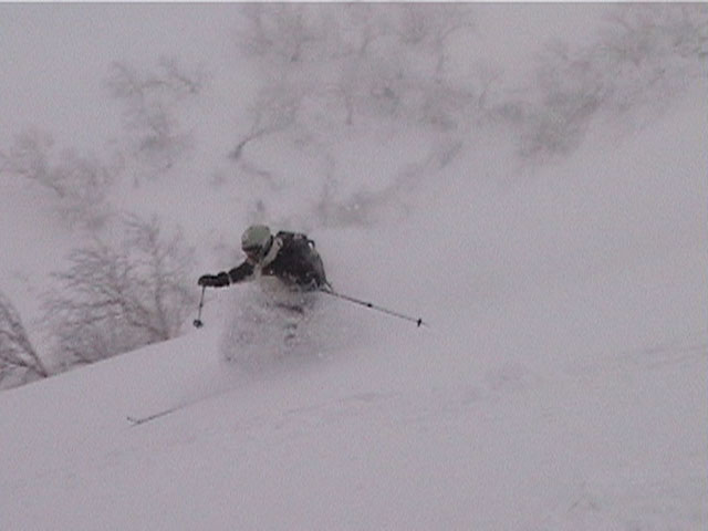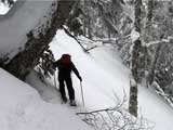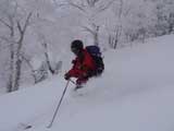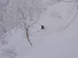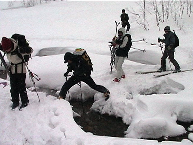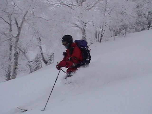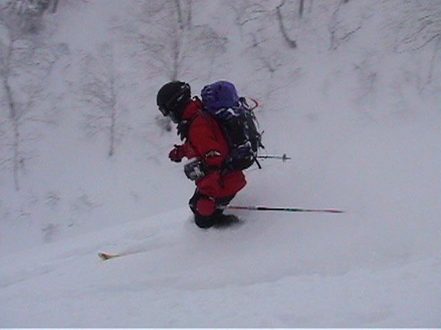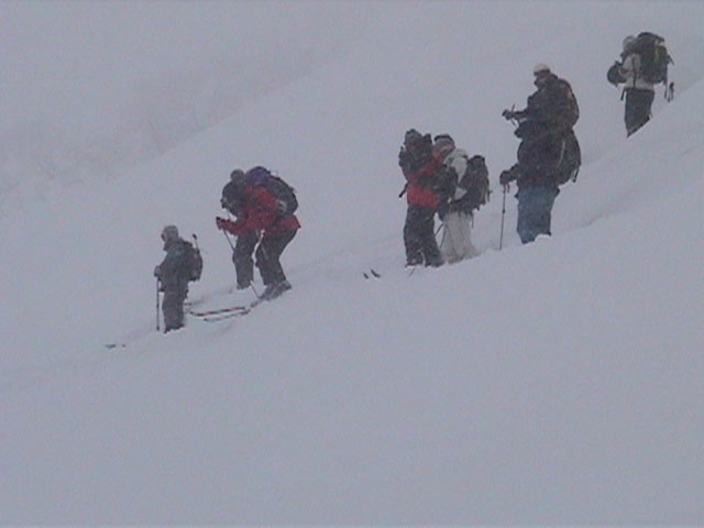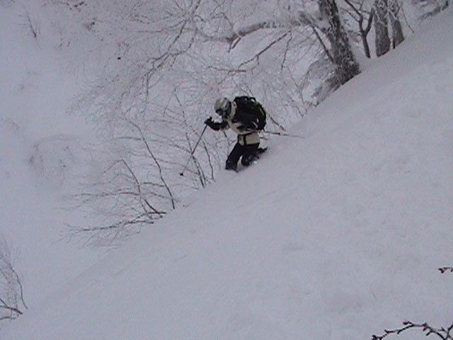 | 2002年2月10日(日) 富良野岳スキーツアー(北尾根TGR) 結果:1556m地点から滑降 天候:曇り 風速:0〜5メートル 気温:-12〜-15度 雪量:十分 雪質:重め〜軽いパウダー コース:ジャイアント尾根〜ベベルイ谷〜北尾根 今回も三段山クラブ&テレテレ隊の合同ツアー。 かなりの数のパーティが入山しており、バーデン上富良野前には車がびっしり駐車していて驚きました。T字路そばに駐車すると通行の邪魔になるということですので、ご注意ください。 ありがたいことに、HYMLオフミ隊が素晴らしいコース取りで先行してくれていたので、登りではほとんどラッセル無しでした。感謝いたします。 樹林帯は風も無く穏やかで、雪も良かったのですが、森林限界より上では風が冷たく、雪もウインドパックされていました。 森林限界より少し上で、続々と他パーティが下山していく中、我々はさらに尾根を詰め、いつもの1550m地点からベベルイの谷へ降りました。 いつもは、途中からジャイアント尾根へトラバース気味に戻るのですが、今回のスペシャルゲストU田氏の素晴らしいガイドにより、そのまま谷を降りて北尾根へトラバースし、樹林帯の急斜面(通称「北尾根TGR」と呼ばれているらしい)を一気に滑り降りました。 一応トラック図は掲載しますが、このコースはかなり上級者向けです。谷から北尾根に向かってかなり急な斜面のトラバースがあり、スノーシューでの通過は困難でしょう。 後半は斜度がきつく(最大斜度38度)、樹林も濃く、特に北尾根TGRの両側は見通しの利かない崖状になっていますので、大変危険です。(くれぐれも雪崩にご注意ください。特にこのフィールドのツアーは、雪崩ビーコンを含めた雪崩対策装備の全員の携帯をお勧めします) 今回、初めてeTrex Ventureを純正ホルダーにゴムバンドを通し、ジャケットの上から装着して腕時計感覚で使ってみました(写真2)。感想は・・・「これはイイ!」です(ザックの中には予備機を入れてあります)。 行動中、ちらりと腕を見ると、 1.磁北を上にした、緯度経度グリッドとスケール入りのマップに表示される現在位置とトラック 2.なまら正確な時間 3.補正の必要ない現在高度 4.衛星補足状況による、測定誤差 の4点の情報が常時表示されています(カスタマイズしました)。これを見ながら行動すると恐いもの無しです。 バーデン上富良野前9:50-10:16ベベルイ沢の滝10:27-11:34森林限界(1370m)-12:06滑降地点(1556m)12:23-13:16北尾根(1250m)13:33-14:16バーデン上富良野前 メンバー:旦那、A部、K藤、おけい、スー、N崎、Hiro、ゆきこ、Toshi、U田(順不同 三段山クラブ&テレテレ隊)合計10名 |
