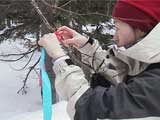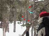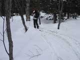 三段山麓スキーツアー(トホホ・・目印テープ回収ツアー) 久しぶりに、妻のゆきこさんと二人きりのツアーです。先月三段山で切った靱帯のリハビリを兼ねているので、滑りのないハイクとしました。焼き肉道具一式を背負って楽しく森林ハイクをしていると・・・「うわっ!」 ガイドの山小屋さんから聞いていた大量の目印テープに遭遇しました。間隔は5mくらいでびっしりと吊されています。適度な目印テープにはそれほど目くじらをたてませんが、これはあきらかにやりすぎです。 当然撤去作業を開始しましたが、悪意があるかのようなもの凄くきつい堅結びでなかなか外れません。仕方なくだいぶ枝を折って除去してしまいました。この作業を延々やっているうちに、もの凄く腹が立ってきました(今回だけで約100本のテープを回収しました)。 こんな場所にはどう考えても、こんなに目印テープは必要ありません。自然分解しないビニルテープを使う必然性も堅結びの必然性もありません。まったく理解に苦しむ行為・・というか、ほとんど犯罪です。しかも、除去しながらルートを辿ってみれば、西に歩けばかならずぶつかる望岳台からの道路に出るだけで終わりです(白銀荘→夏道で前十勝方面の林間→火山観測小屋→尾根筋を吹上望岳台道路というルートらしい)。以前三段山の夏道ルート上でも類似の目印テープを見つけて撤去しましたが(同一犯でしょうか?)、ガイドの山小屋さんによると毎年この時期にこのようなテープが吊されるそうで、こんないたちごっこを繰り返すのは勘弁してもらいたいものです。 ●樹木へ目印テープ(蛍光色のビニールテープ)を取り付けたまま残していくことはご遠慮下さい 最近、三段山周辺の樹木に目印テープを過剰に取付けて、そのまま残していくケースが見られます。 ビニール製のテープは自然分解しませんので、これは山にゴミをまき散らしているのと同じ行為です。 登山者が取り付ける目印テープは、原則として使用後は取り外して持ち帰るのがマナーです。 雑然と取り付けられた目印テープは、かえって他の登山者を混乱させます。 あきらかに過剰に取り付けられている目印テープについては、随時撤去しております。 三段山の自然を愛する者一同より 結果:なんだか・・テープを撤去して終わったっー感じ 天候:曇り 風速:0〜5メートル 気温:0度くらい 雪量:十分 雪質:重雪〜クラスト、樹林帯は重めのパウダー コース:白銀荘〜火山観測小屋〜望岳台道路 メンバー:旦那、ゆきこ 合計2名(順不同) |