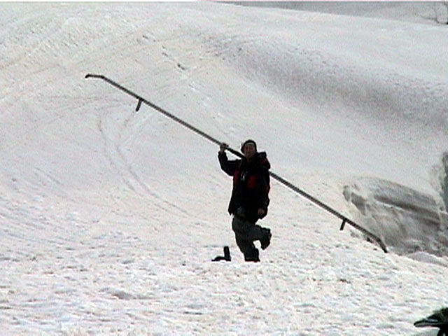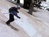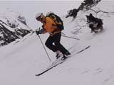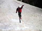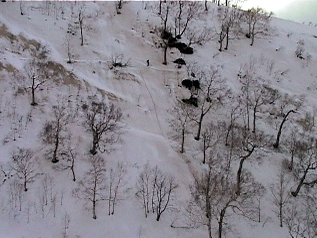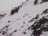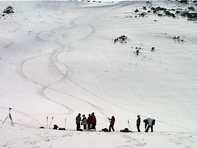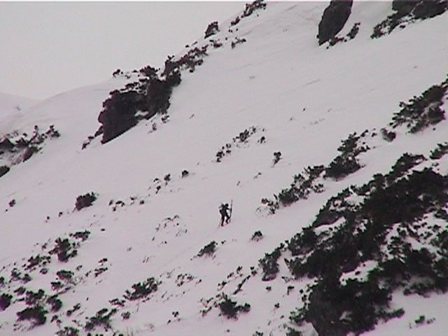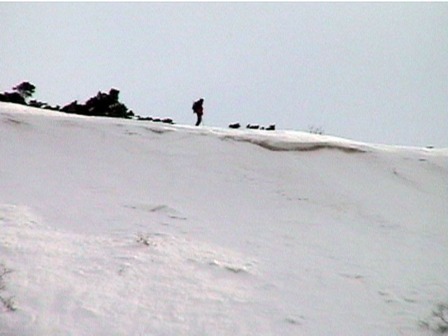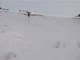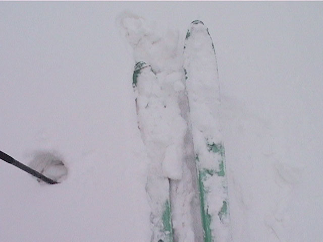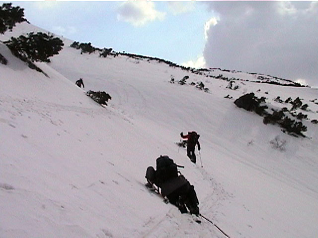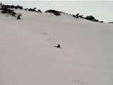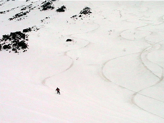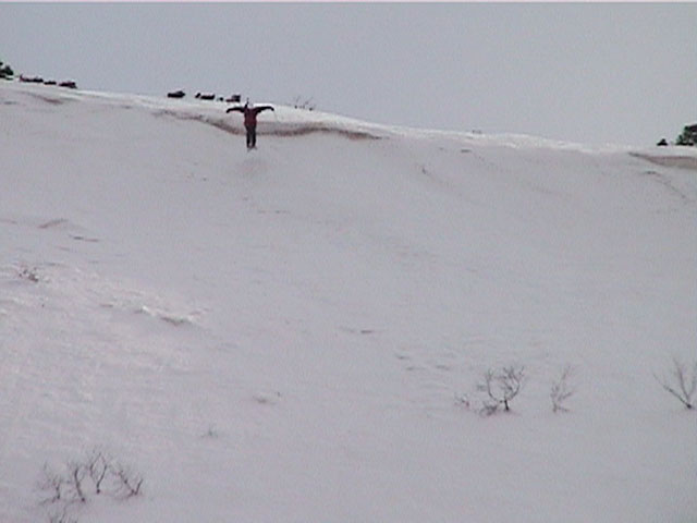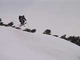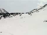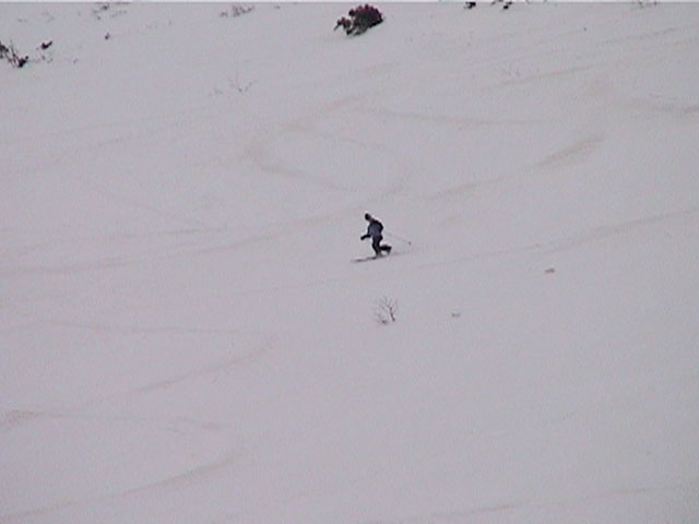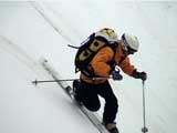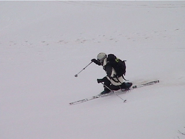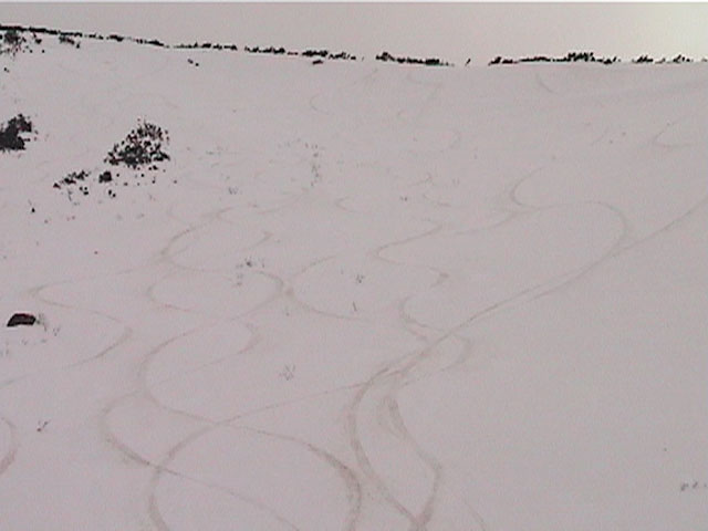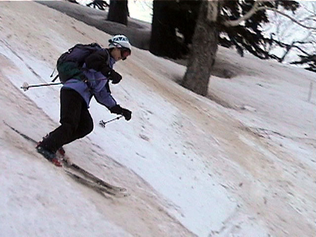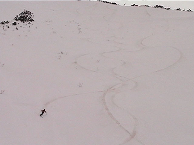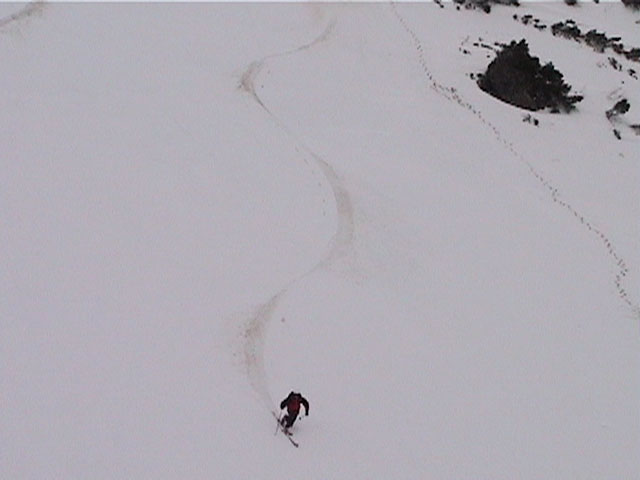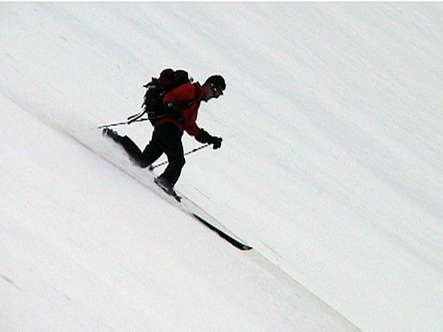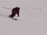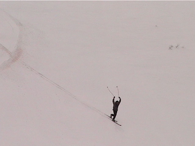 | 2002年4月13日(土) 三段山ナマコ尾根スキーツアー(フリコ沢サーカス) 通常よりも半月以上早い雪解けに焦り気味の僕ら。今回はツアー初めての初心者と超過激テレマーカーが一緒なので、行き先には頭を絞った。結局、ナマコ尾根をつめてフリコ沢にベースを構え、周りの緩急様々な斜面をお好みで登り返して楽しむ事にした。 行ってみたら、これが意外と・・・イイ!斜度40度級のオープンバーンに囲まれ、他に登山者も居ず、カッコイイV字型の渓谷もある。雪庇からのジャンプ、崖からの落下・・僕らは時間を忘れて登り滑りを繰り返し、フリコ沢サーカスを楽しんだ。 ちなみに急斜面に囲まれたこの場所は雪崩の巣である。今回もデブリや雪崩の跡を目にしたので、特に厳冬期には近づかない方が良い。この時期にも全層雪崩に注意しよう。 結果:フリコ沢滑降しまくり 天候:晴れのち曇り 風速:0〜3メートル 気温:10〜12度 雪量:先週からは劇的に減ったが、コースを選べば十分に滑降可能。ただし尾根はハイマツがひどいので避けた方が良い 雪質:黄砂の上に1センチの新雪。おかげでシュプールが茶色浮かび上がる。部分的にはパウダーもどきが残っている コース:白銀荘〜ナマコ尾根 白銀荘9:50-11:30ナマコ尾根最深部14:32-16:23白銀荘 メンバー:旦那、ゆきこ、スー、toshi、チリ、かっちゃん(漁師7号)、みどりママ、さとう 合計8名(順不同) |