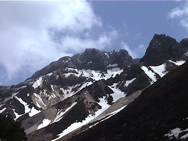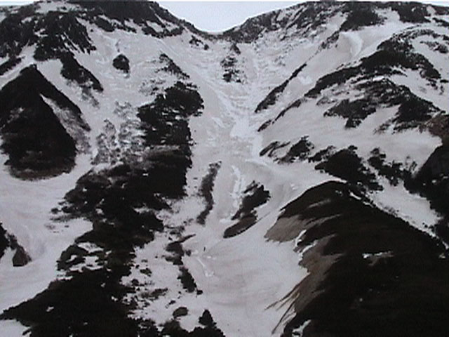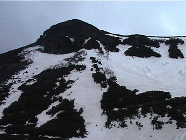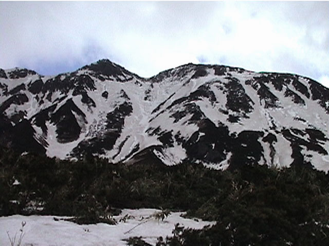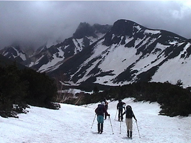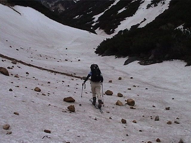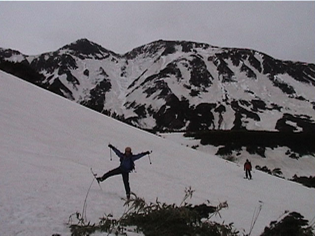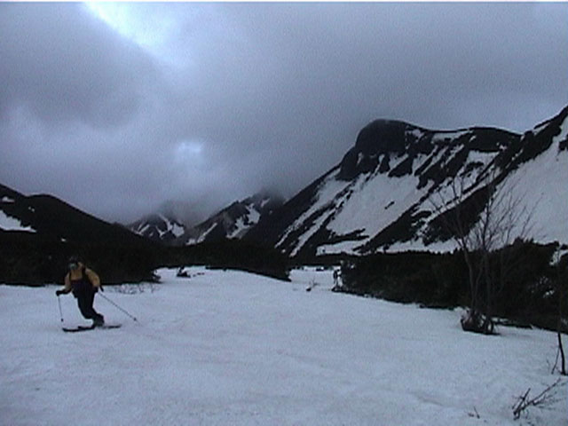 正面の谷が目標滑降ポイント