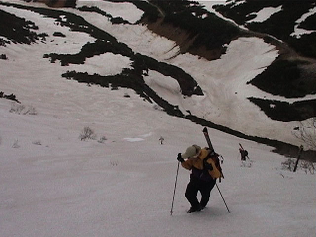 登り返しで二度目、だんだん滑降開始高度が高くなる