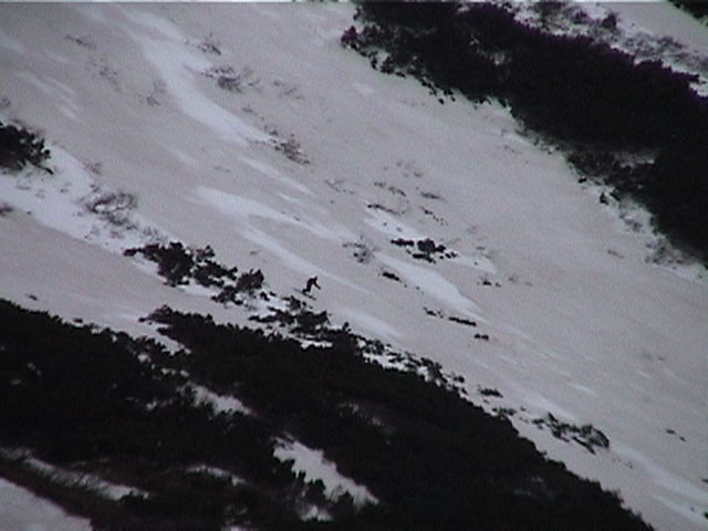 その様子を撮影しようとして、滑落しそうになり、ハイマツにぶら下がる旦那の図(pollyさん撮影)。やー恐かった。