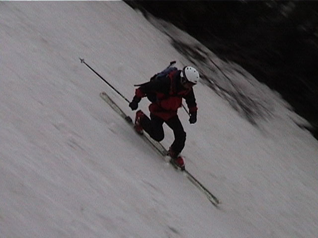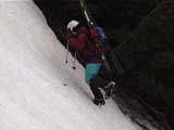 続いて、化け物岩直下の狭いシュートを狙います