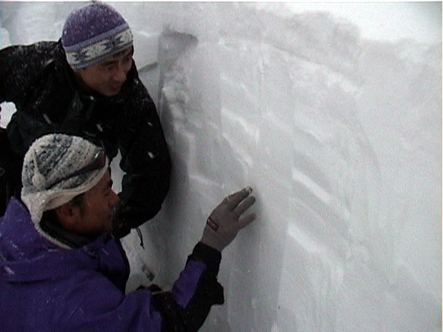 体力のありそうなチリ君にジャンプしてもらう。綺麗に弱層から崩れたところ