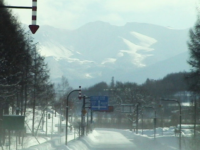 前方から十勝連峰が見えてきた
