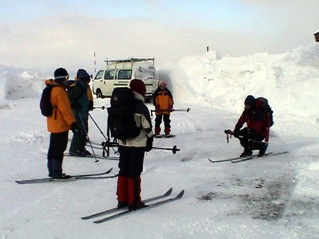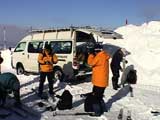 スキー、スノーシュー装着
