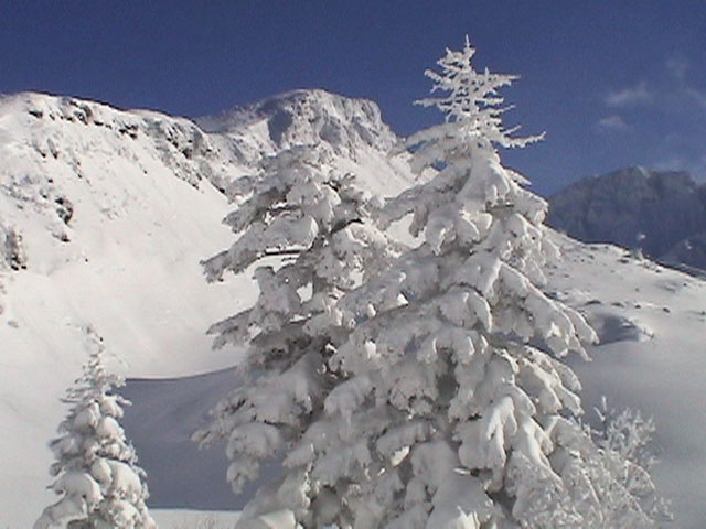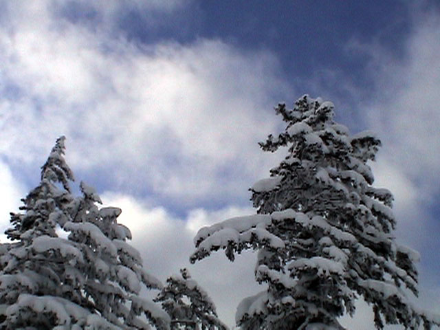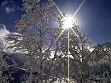 時折、樹木から粉雪がきらめきながら降り注いでくる